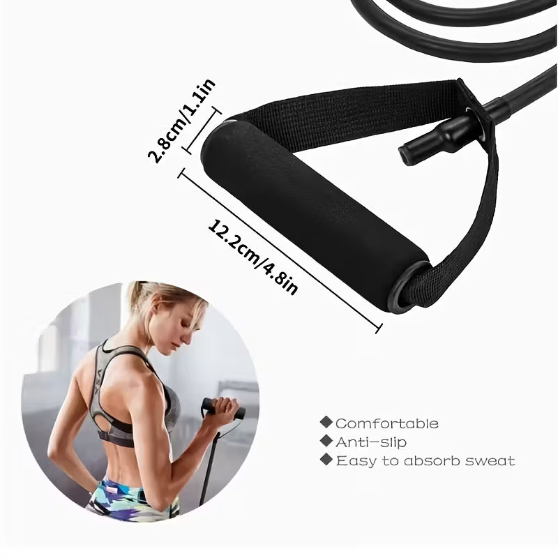 - ◆ POIGNÉES EN MOUSSE ANTIDÉRAPANTES ET ANCRAGE DE PORTE SUPPLÉMENTAIRE. Les bandes de résistance d'exercice en tube sont équipées de deux poignées en mousse antidérapante. Elles sont très confortables à tenir, vous garantissant un meilleur entraînement. Et grâce à l'ancrage de porte en mousse dense mais souple, vous pouvez les placer en haut, au milieu et en bas de la porte, ce qui vous permet d'effectuer davantage de programmes de remise en forme